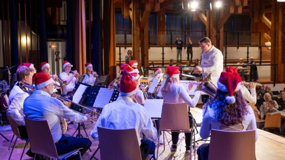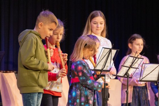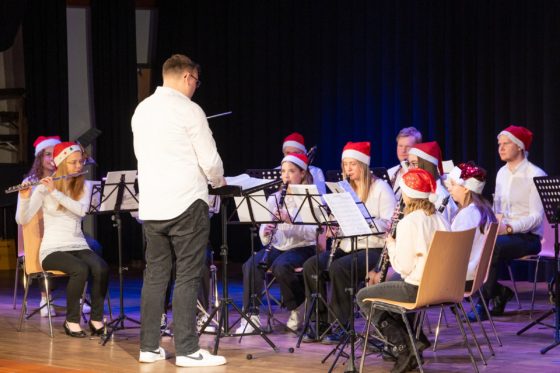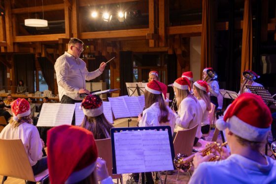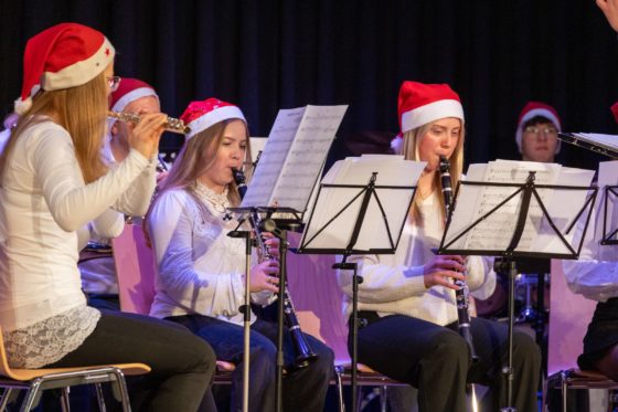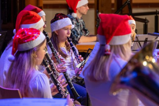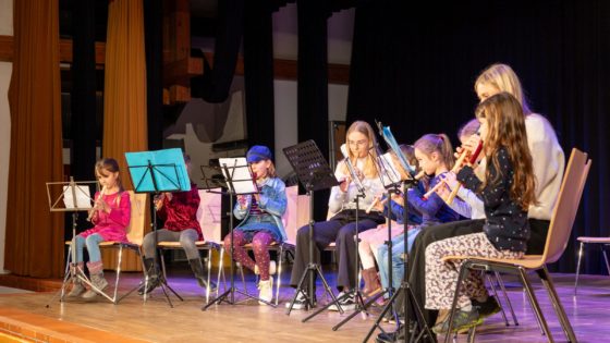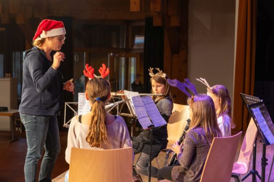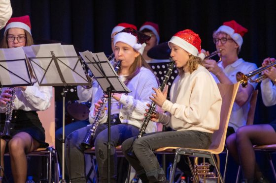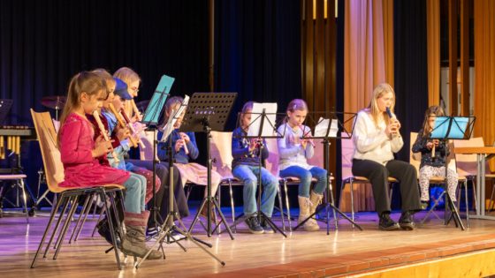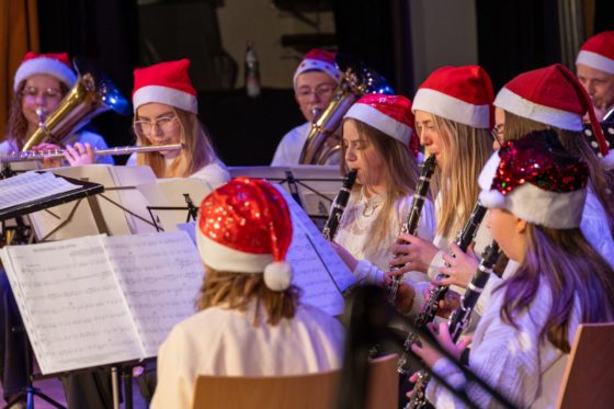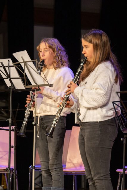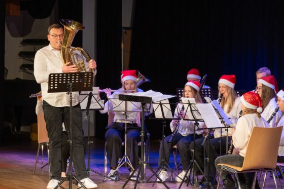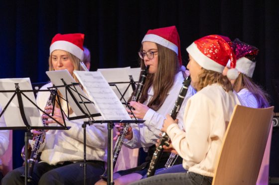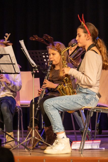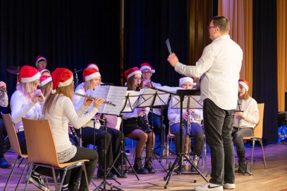 Den Anfang der musikalischen Darbietungen bildeten die Flötengruppen. Mit Weihnachtsliedern begeisterten schon die Jüngsten im Verein unter der Leitung von Ella Wingert, Lia Franke, Lara Krämer und Julia Bühler das Publikum. Im Anschluss präsentierten zwei unserer Klarinettistinnen im Duett ihr Können. Vorgetragen wurden die Weihnachtslieder „Oh du Fröhliche“ und „Fröhliche Weihnacht“. Weitere Weihnachtslieder spielte, unter der Leitung von Samantha Müller, das Vororchester, eine Vorstufe zum Jugendorchester. Auch dieses überzeugte mit einer beeindruckenden Leistung, obwohl die ersten Proben erst diesen Herbst stattfanden.