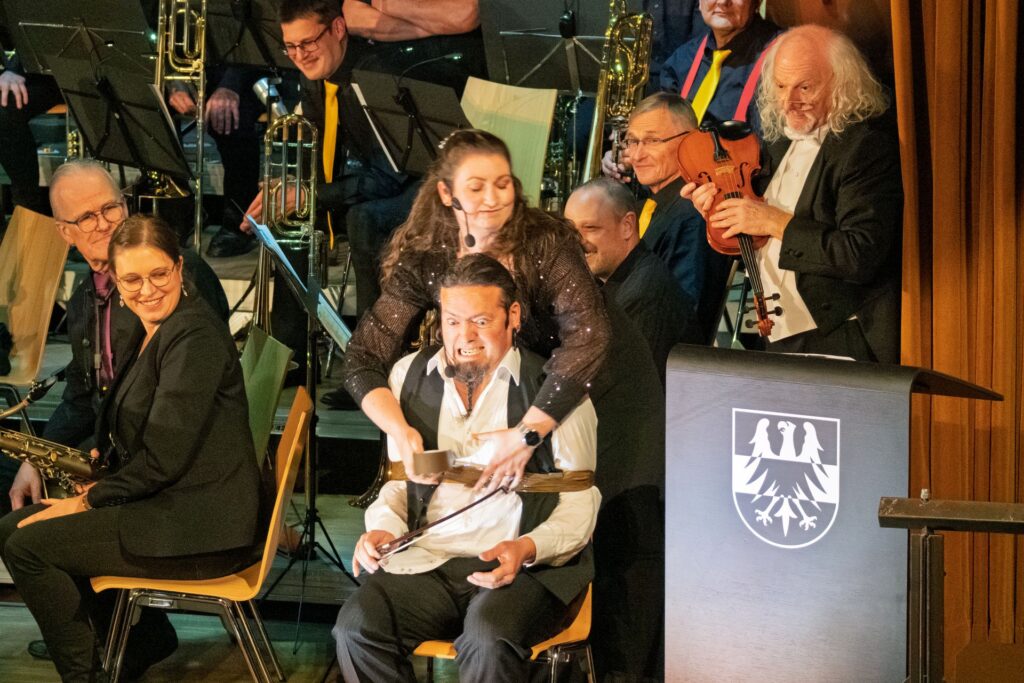 In jedem Werk überzeugten die Solistinnen und Solisten nicht nur durch ihr musikalisches Können, sondern auch durch große Spielfreude und Ausdruckskraft. Weniger durch musikalisches Können als vielmehr durch seinen selbstbewussten Auftritt fiel hingegen der „Künstler mit vielen Namen“, gespielt von Wim Cannie, auf. Gemeinsam mit der charmanten Moderatorin Milena Harney gelang es ihm dennoch, dem Publikum ein Lächeln ins Gesicht zu zaubern.